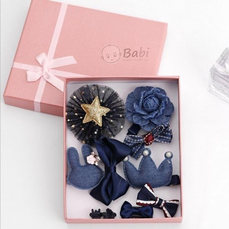 Hộp phụ kiện xinh xắn cho bé yêu gồm 9 món đa dạng với cột tóc, kẹp tóc cực xinh, màu sắc tươi sáng tôn lên nét hồn nhiên, xinh xắn của bé. Giá bán 85.000đ tại Babi.vn!